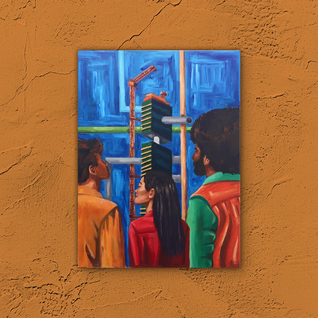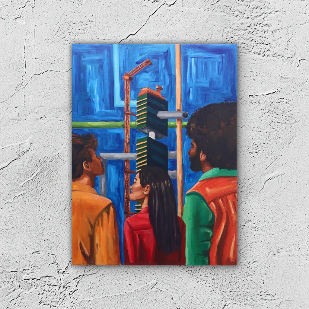 Its midsection held open by cranes, rods, and temporary systems that keep ambition suspended in midair.